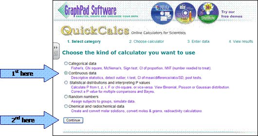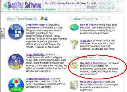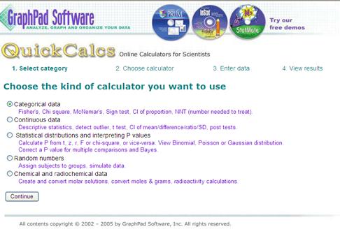 Data can be entered at graphpad.com by selecting their “quick calcs” on the opening page.