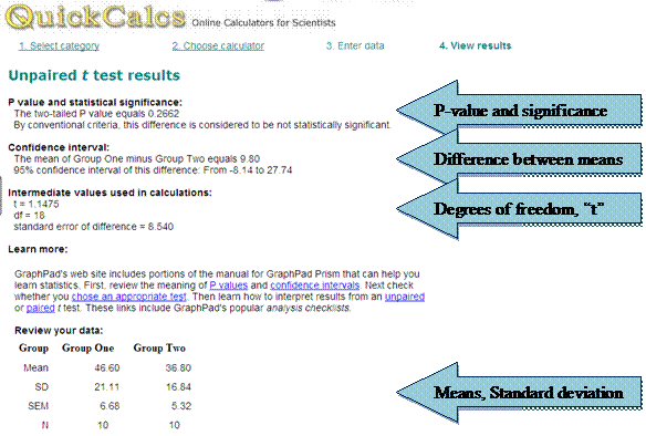 Tip: It is usually easier to just perform a t-test of data using the graphpad.com website (compared to using your calculator to compute means and standard deviations) as GraphPad will calculate the means and standard deviations as well as telling you if the differences are significant or not.