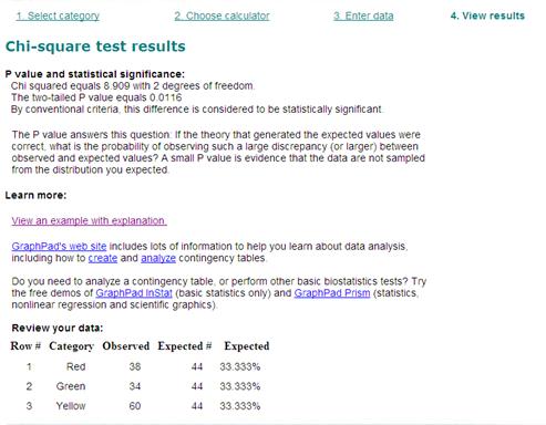 “A chi-square test was performed using the site http://www.graphpad.com. Based on ___ degrees of freedom and a P value of ____ the Null Hypothesis is not accepted. The differences between the control group and the experimental group are significant.”