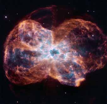 A HST image of NGC 2240 that is about 4,000 light-years from Earth. UV light from the remaining central white dwarf, one of the hottest known, makes the material fluoresce. The original star had a mass similar to that of the Sun.