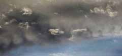 A similar formation was photographed in Greymouth, New Zealand, on the 13.6.05. Inverting the photograph and rotating 180° shows at once that downward convection is involved since the formation then looks like normal clouds seen from a above. The science fiction book Cloud Atlas has six pictures of clouds on the cover. The example of top-lit mammatus is on the cover of my copy appears to be upside down!