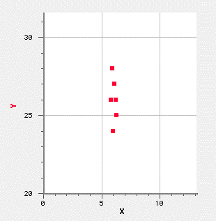 Six values are plotted. The uncertainty in Y is greater than the uncertainty X . it is normal to average the data and to expresses the likely error with an error bar in the Y direction only.
