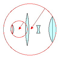 | The focal lengths of the two outer glass lenses are shown. Print and complete the diagram for the other two lenses. |