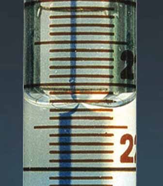two are noteworthy. 1 A measuring cylinder is read to the bottom of the meniscus. 2 Water will rise in a narrow tube due to the upward pull of surface tension forces. The effect is called capillary action and is of singular importance for biological systems. In particular capillary action transports ground water to the tops of tall trees and water soaks into cloth and paper. Back |
