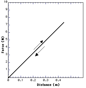 As the spring contracts the graph returns to zero on the same straight line. The steel is said to be