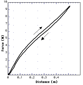 The graph does not return to zero on the same path as the rubber contracts. The rubber is not