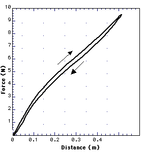 Hysteresis loop for a rubber band, plotted over 3 seconds