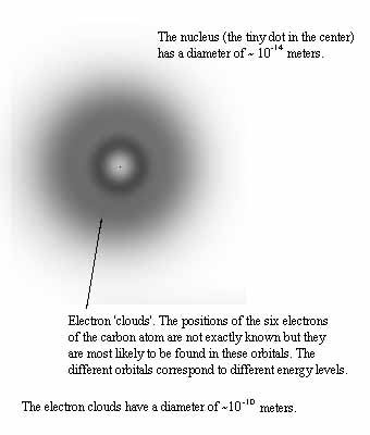 The carbon atom has two spherical shells - the inner one has two electrons, the next has four.