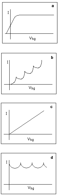 The values of anode current, I, were recorded for different values