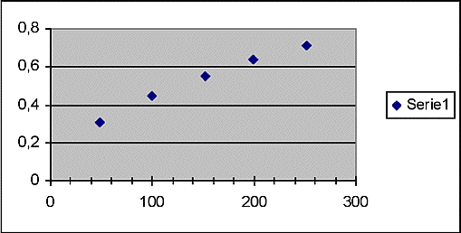 4.1. Data processingIf the graph had been clearly linear, the students could here have moved on to find the proportionality constant they called k in section 2.2.. or alternatively just verbally stated that an inspection of the graph shows that it depicts a linear relation, since the research question strictly speaking is just to find the type of the dependency, not to determine a specific value. Ed.
