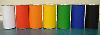 - Seven cans covred with colored paper.