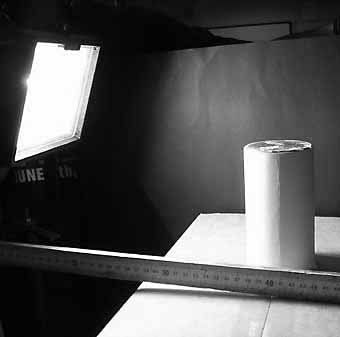 Fig 5 - the 500 Watt lamp was positioned 30 cm from the upturned paper covered aluminum can. The image is shown in black and white because the camera did not rerproduce good color over the very wide intensity range. |
