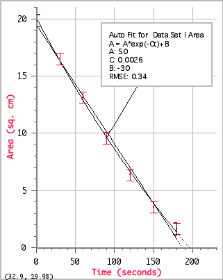 - an exponential function and a straight line have both been fitted to the data points.