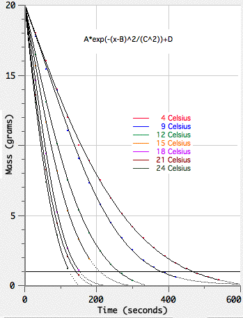 Mass-time curves for ice cubes
