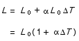 The increase in length is given by the original length, Lo, multiplied by a constant, a, and the temperature change, DT.