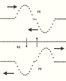 | When the two pulses completely overlap the displacements cancel - the medium is then momentarily undistorted. The physical situation is interesting. PE stored in the distorted medium is transformed for a short time to the KE of rapid particle motion. |